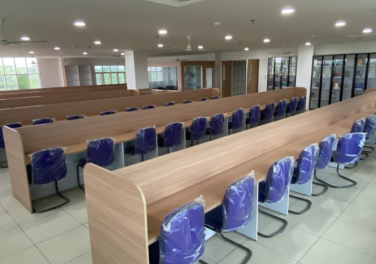 The college library houses having different titled latest edition books , including textbooks, National & International journals, magazines, and newspapers, supporting both students and faculty. Equipped with digital resources and e-library access, it provides a comfortable, fully computerized environment for academic research from 8 a.m. to 6 p.m. daily. Features include dedicated sections for reference materials, magazines, theses, and a separate digital zone with access to numerous online journals.